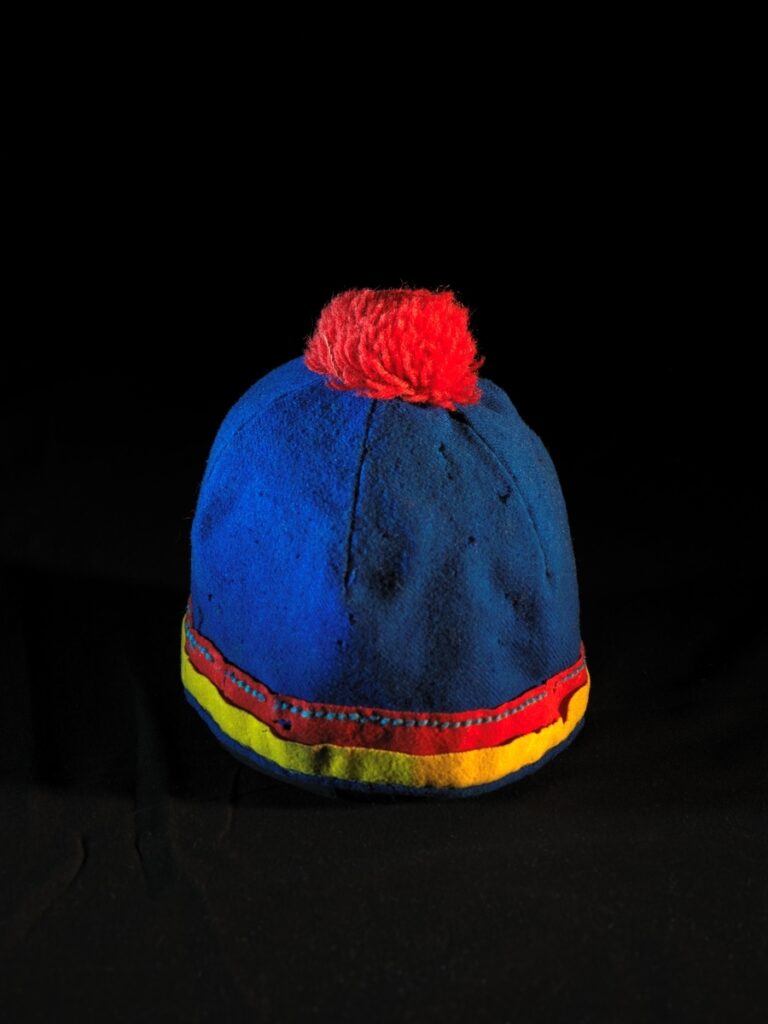 Birasgahpir / mannslua er sydd av blått ullstoff og kantet nede med rødt og gult ullstoff. Rød dusk av ullgarn på toppen. Høyde 17 cm, diameter 18 cm. Denne herre /gutte- luetypen er beskrevet brukt i kystområdene av Nord Troms og Finmark. Lua er innsamlet i Romsa / Tromsø området, og er innkommet til Norsk Folkemuseum i 1950. (Deponert fra Universitetets etnografiske museum).
